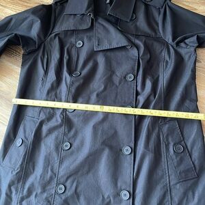 Universal Standard Derjon Trench Coat NWT. Size 14-16, listing as 14 - Universal Standard does vanity sizing so see size chart for Size S in US sizes. Front button. Water repellent coating per brand. Half belt in back. Measurements in photos. A few wrinkles from storage. Classic look!