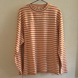 Alex Mill long sleeve shirt with orange stripes. Perfect for casual wear. Pair with a denim jacket and sneakers for a great weekend look. 2 small stains on the front (pictured) Size M