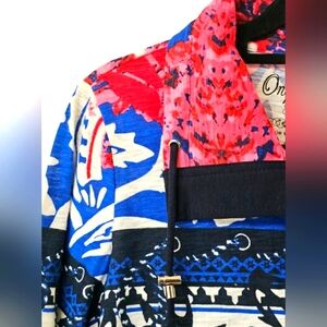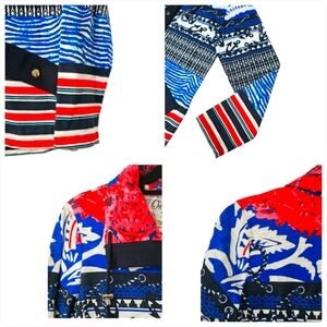 Onque Casuals Nautical Tropical Red White Blue Lightweight Button Up Jacket Top