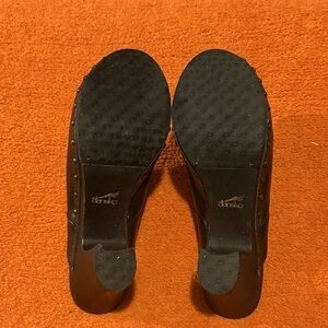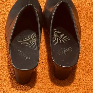 Dansko Black Leather Mules with Chunky Heel and Studded Detailing
