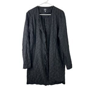 Eileen Fisher Womens Jacket Large Crinkle 100% Wool Black Cardigan long langenlo