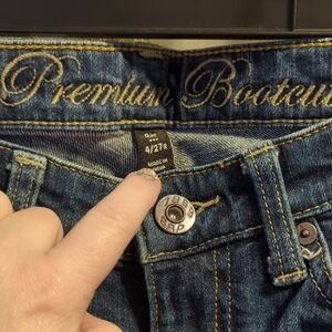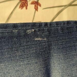 light distressing on the back ankle area. little spot of discolored denim on left knee. non stretch, classic fit... maybe worn 1-2 times!