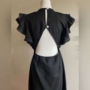 Splendid cocktail black dress featuring very chic ruffle sleeves and a button-down front.
