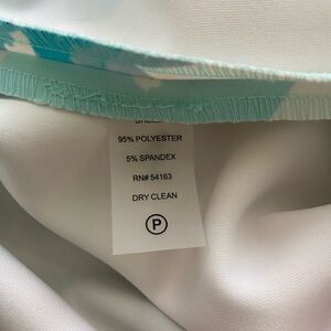 This elegant Calvin Klein dress features a chic off-the-shoulder neckline and flutter sleeves, perfect for a wedding guest or cocktail event. The sheath silhouette in a midi length is adorned with a vibrant floral pattern in pink and orange hues, creating a striking and sophisticated look.