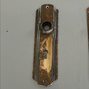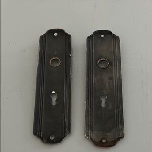 Enhance your home decor with these vintage brass door plates. Beautiful touch to any room. Lots of patina.