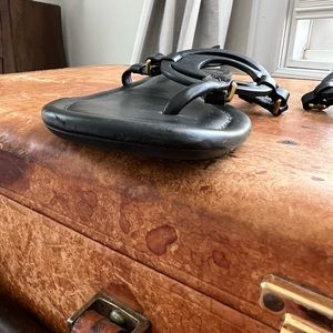 COACH Jeri Black Leather Logo Sandals 8 - Good Used Condition