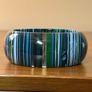 Carlos Sobral Vintage Striped Blue Green Resin Bangle