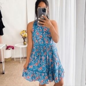 💟 Sunday Mi Amor Floral Open Back Mini High Neck Dress Blue Small