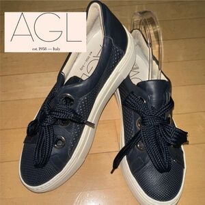 Like NEW AGL Perforated Platform Blue Leather Sneaker,38, CB2378
