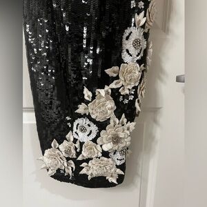 Alice+Olivia FRANCIE Asymmetric Floral Appliques Sequin Embellished Fitted Dress