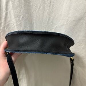 Elevate your style with this chic blue suede circle bag. Handmade by Jackalope Milk. Lightly used and like new condition.