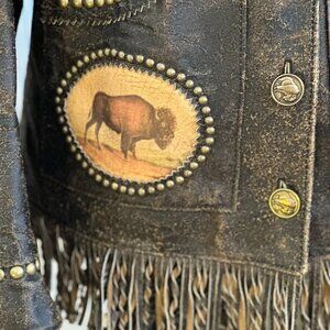 This is a distinctive Western-style leather jacket featuring: