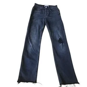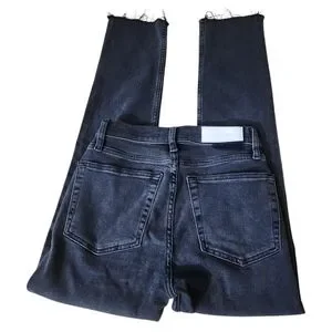 RE/DONE Originals Size 24 Faded Black Ankle Crop Jeans Raw Hem Button Fly