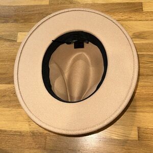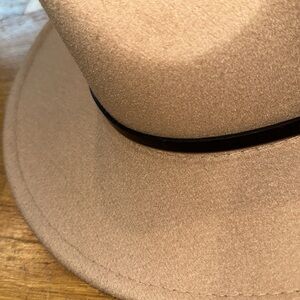 Amazon | brown fashion hat with small black belt. Purchased on Amazon, unsure of specific brand. Excellent condition. Strings inside to adjust size. See all photos for hat details, design, condition, and measurements