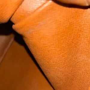 Some minor peeling of the interior pocket . No tears. Some stains or discoloration of leather Non sticky. No odor.