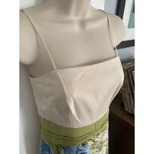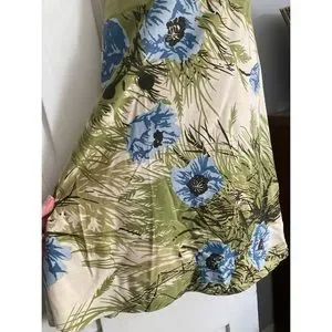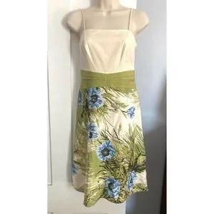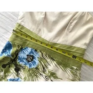 Lovely silk/cotton blend spring dress from Ann Taylor. Springy green and blue floral print on cream/ivory background. Women’s size 2 petite. New without tags, purchased from a boutique that was closing.