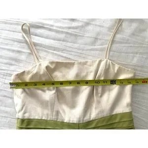 Condition: NWOT. When I was folding this dress for storage I did notice a couple of VERY light smudges on the bodice and strap (see photos- might have to zoom in). Care tag says “dry clean” so I did not try to remove them, but I’m confident they would come out when dry cleaned, and even a spot clean may do it. Honestly they’re so faint that I would be comfortable wearing it as is and just having it dry cleaned when needed! See photos for condition and measurements.