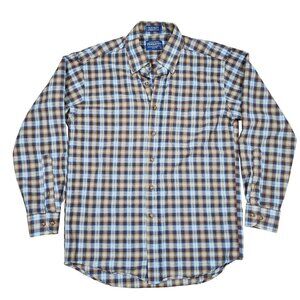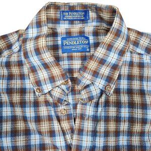 Sir Pendleton Mens Brown Blue Long Sleeve Plaid Button-Up Shirt Wool Medium