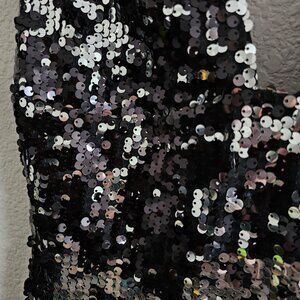 Rachel Zoe Venus Sequin Evening Gown Maxi Dress in Black and Silver. With its stunning deep v-neckline, this dress will make you stand out on any occasion. Plus, its unique combination of silver and black sequins adds a touch of glam and playfulness to your wardrobe.