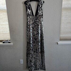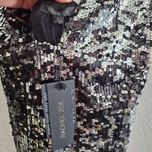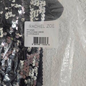 NWT | Rachel Zoe Venus Silver Black Sequin Evening Gown Maxi Dress Size 6