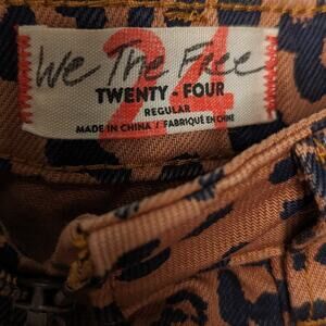 Free People Zip It Up Animal Print Denim Mini Skirt Raw Hem Pockets Size 24