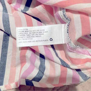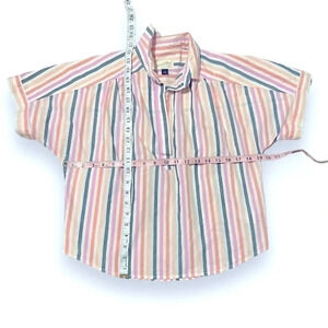 Universal Thread Women's Short Sleeve Striped Pullover Blouse Shirt Top. Size Small (see photos for measurements). Made of 100% cotton. Collared neck with buttonless placket, Curved hemline. Colors: White, Pink, Coral, Gray. In excellent condition!