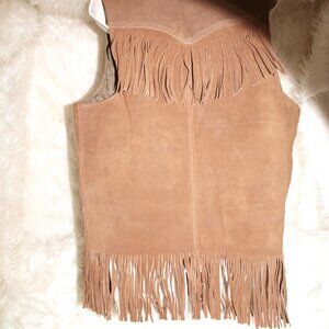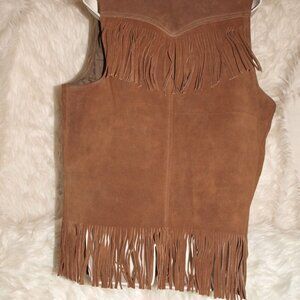Men's Brown Leather VEST With Fringe SIZE L By Western Outdoor Wear By Sears BARELY USED