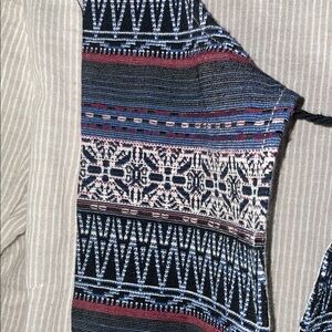 Embrace a bohemian vibe with this stylish white and blue top. Perfect for casual outings, this top features intricate patterns and a comfortable fit.