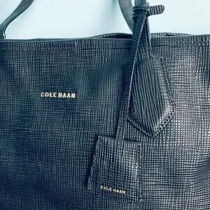 Cole Haan Black Cross Grain Leather Tote Purse