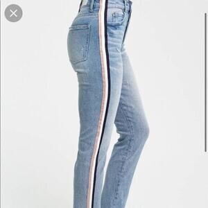 Pistola Nico Half Court Metallic Side Stripe Distressed Mom Jeans Blue Womens 27