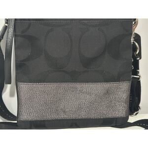Coach Handbags Crossbody Purse Black & Silver Fabric Leather F06M-10129
