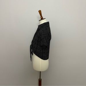 Urban Outfitters Top Cropped Tie Front Cuffed Sleeve Polka Dot Black White Y2K