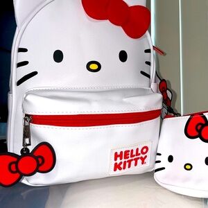 This charming Hello Kitty backpack showcases a delightful white and red color scheme, complete with the beloved Hello Kitty face and signature red bow. Perfect for fans, this backpack combines playful style with practical functionality, making it an ideal accessory for everyday use.