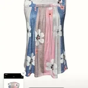 This relaxed tank top features a pleated design in a soothing blend of blue and pink. Its sleeveless style and airy fabric make it ideal for warm weather, offering both comfort and a chic, casual look.