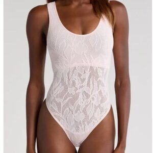 Turn on the charm in this close-fitting tank bodysuit crafted with lovely lacy accents. Color: Mauve Chalk. Size: Medium/Large