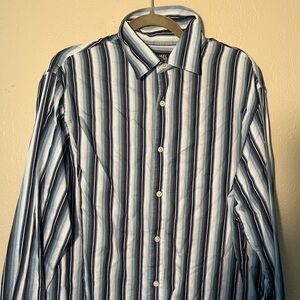 MICHAEL Michael Kors Blue White Stripe Casual Button Up Dress Shirt SZ L Cuffed