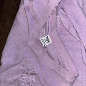 Cozy pink long sleeve sweatshirt with bold lettering on the back.