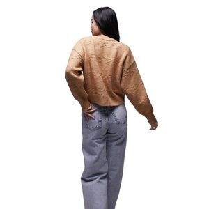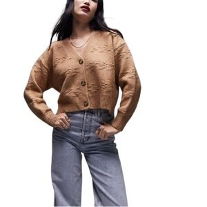 Topshop Knitted Textured Basket Weave Cardigan in Carmel Size 4-6