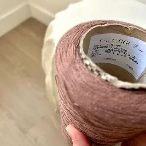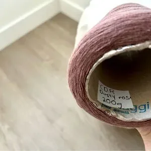 Large cone of light mauve/dusty rose yarn. Perfect for knitting, weaving, crochet and crafting projects. This yarn is 100% cashmere 200g approx lace weight or so.