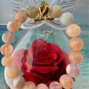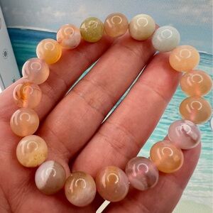 27G Natural 10MM Flower Agate Beaded Bracelet Reiki Crystal 6” Cream Quartz