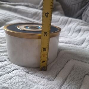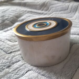Elegant decorative evil eye marble box with a blue and gold evil eye hand painted design by Nikki Chu x Z Gallery!