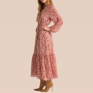 Float through your day in this lightweight crepe floral print dress, featuring a v-neck, tiered maxi skirt, and blousson sleeves for a romantic touch. The separate waist tie creates a flattering silhouette, making it perfect for everything from brunch to a night out.