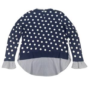 Crown & Ivy Polka Dot Sweater Womens Sz M Ruffle Lightweight Casual Feminine