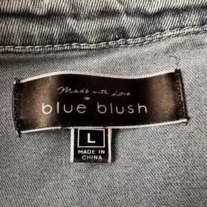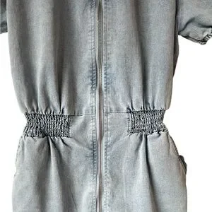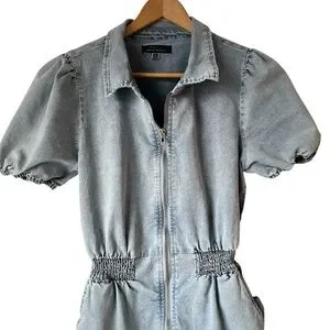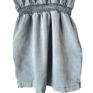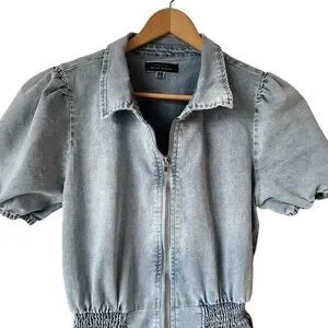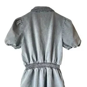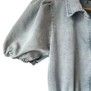 Blue Blush Cotton Blend Faux Denim Balloon Sleeve Dress