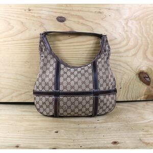 Vintage Gucci GG Royal Canvas Leather Hobo Dark Brown Medium Logo Handbag