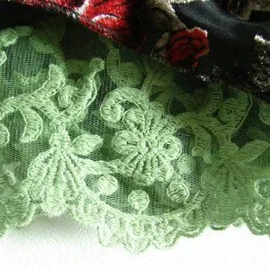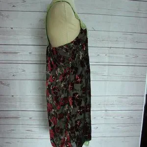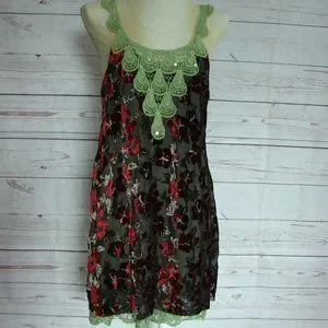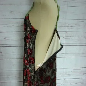 Floral Velvet Burn Out Burgundy Green Lace Dress L