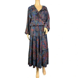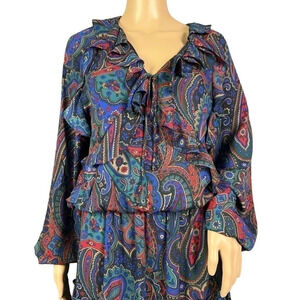 NWT Lauren Ralph Lauren Paisley Georgette Long Sleeve Dress Navy Multi Size 4