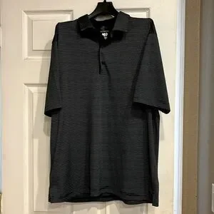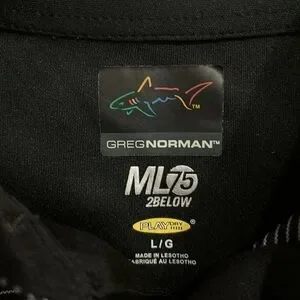 Men’s Large Greg Norman ML 75 2 below golf shirt black with stripes