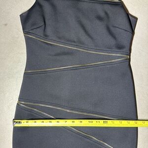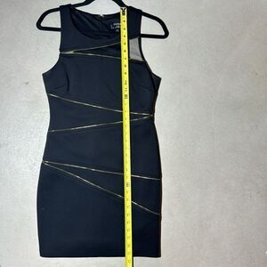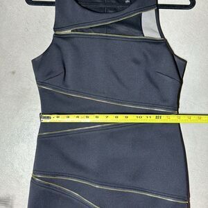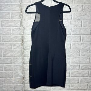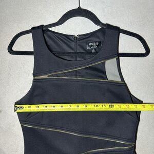 Guess black mini bodycon dress with mesh panel and zipper details. Thick stretchy fabric with lining.
