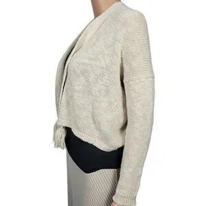 Lucky Brand Women's Cream Colored Cotton/Linen Blend Boho Crop Cardigan with Tassels Size S